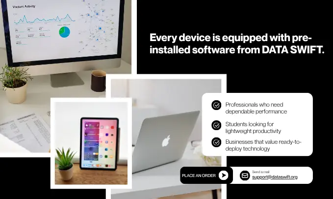 Each DataSwift iPad comes equipped with productivity and management software that enhances multitasking, collaboration, and security, whether you’re working on the go or managing projects remotely.